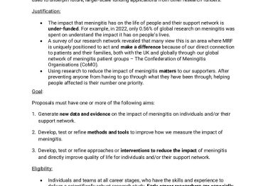 Aligned with our 2025–2030 Research Strategy, Meningitis Research Foundation will invite research proposals to improve our understanding of…