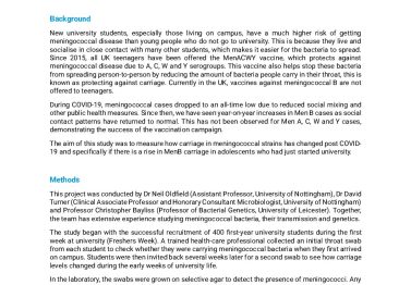 We are pleased to share the final report of a study tracking meningococcal carriage in first-year university students after COVID-19 lockdow…